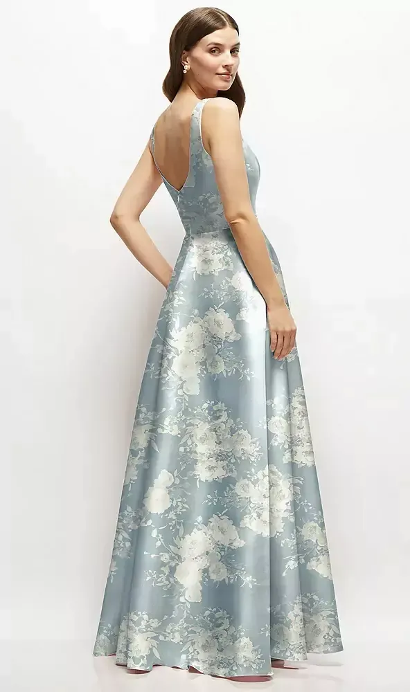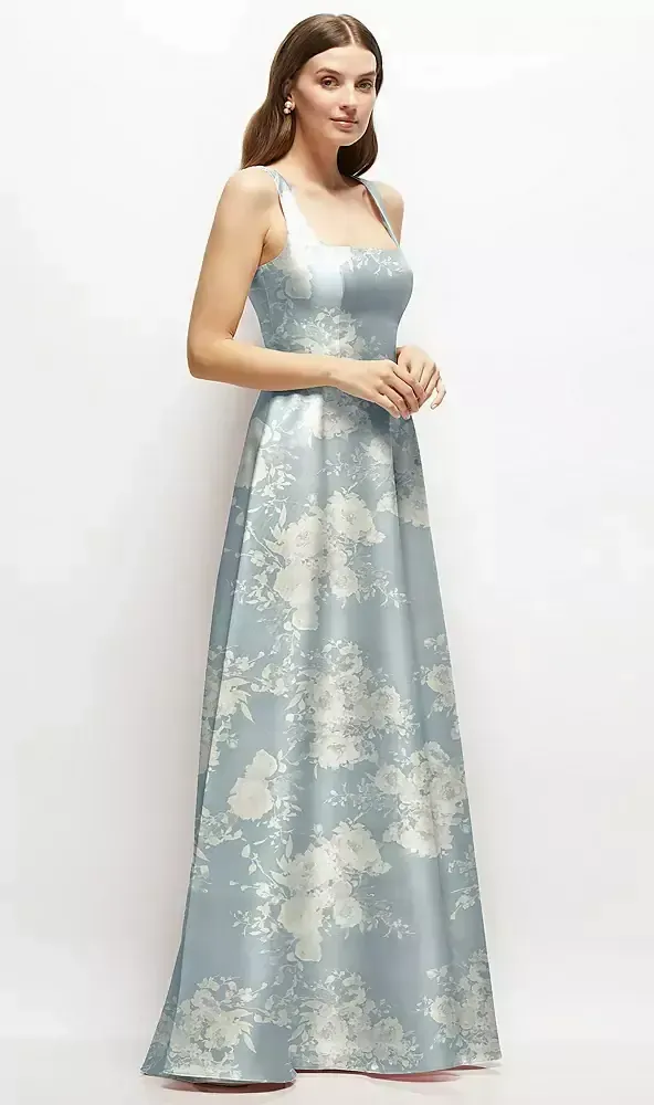 This gorgeous floral satin twill maxi is all about timeless romance with a modern twist. The glossy petal-printed gown showcases a simple square neck that pairs perfectly with its swooshy full skirt, giving it a vibe that's both old-world and totally now. It's designed to flatter and float in all the right places. Plus, there are pockets to stash your essentials. This enchanting satin dress serves up a fairytale vibe, ready to turn heads at any upscale event.