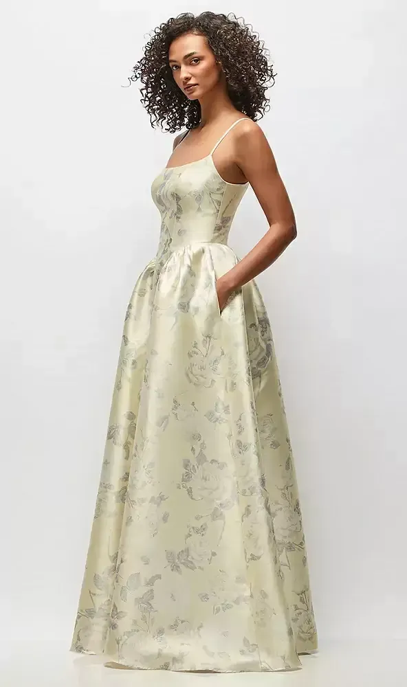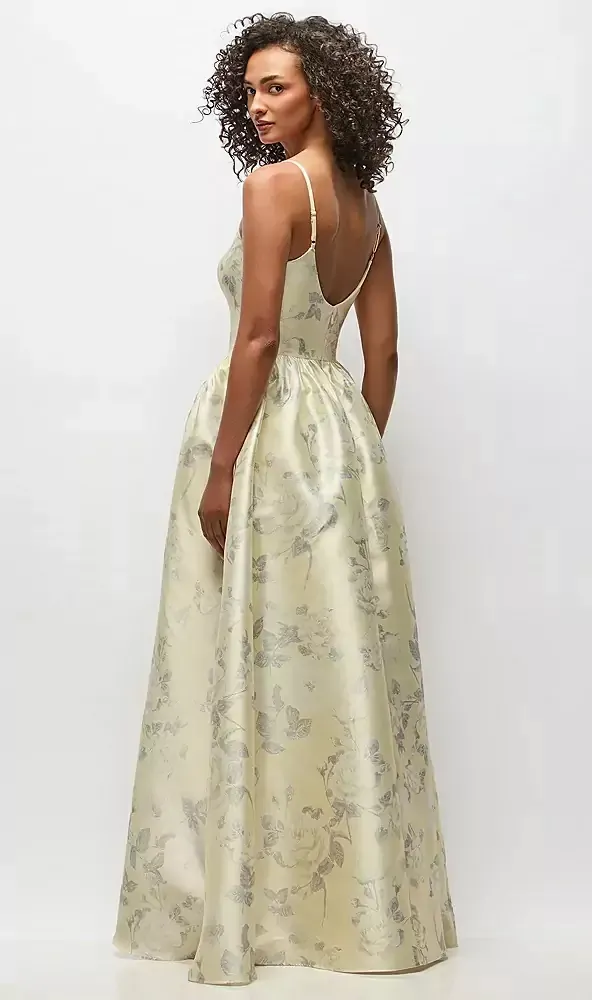 Step into a flower-drenched fantasy with this floral satin twill maxi dress that's pure magic from every angle. The soft sheen catches the light, while delicate spaghetti straps and a sweet scoop neckline create that effortless, chic vibe. The floral print adds a playful twist, infusing the classic shape with a vibe that feels fresh and so now. The modified drop Basque waist adds a bit of edge, and the full skirt was practically made for spinning—yes, with pockets, so you can stash your essentials for a hands-free night. This floral satin dress doesn't just want attention—it was made for unforgettable moments.