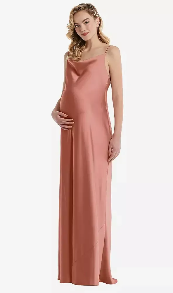 Celebrate life and love with this lux charmeuse convertible strap maternity dress. Perfect for bridesmaids, this chic bias slip dress can be customized to create a halter, straight, or crisscross strap look.
