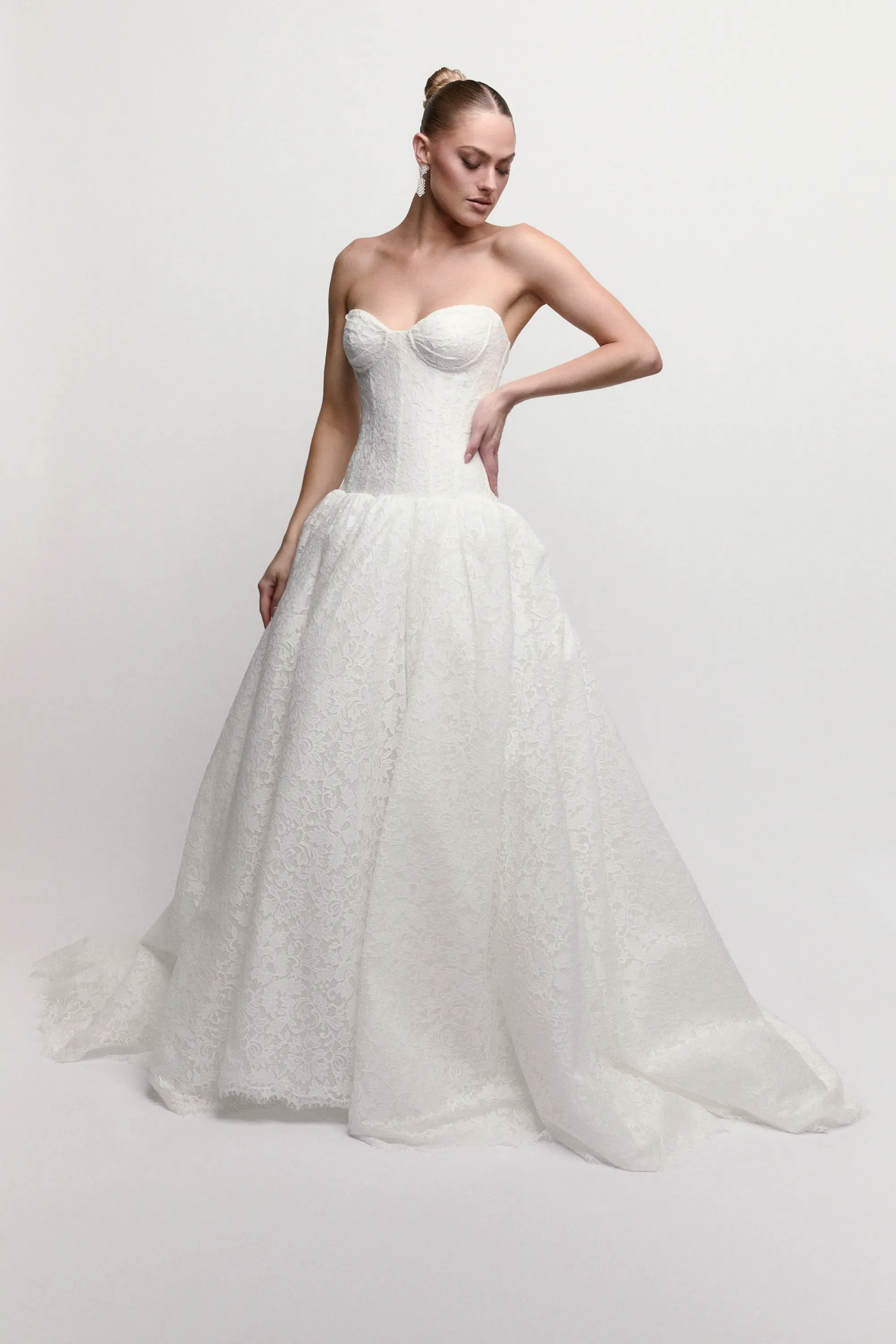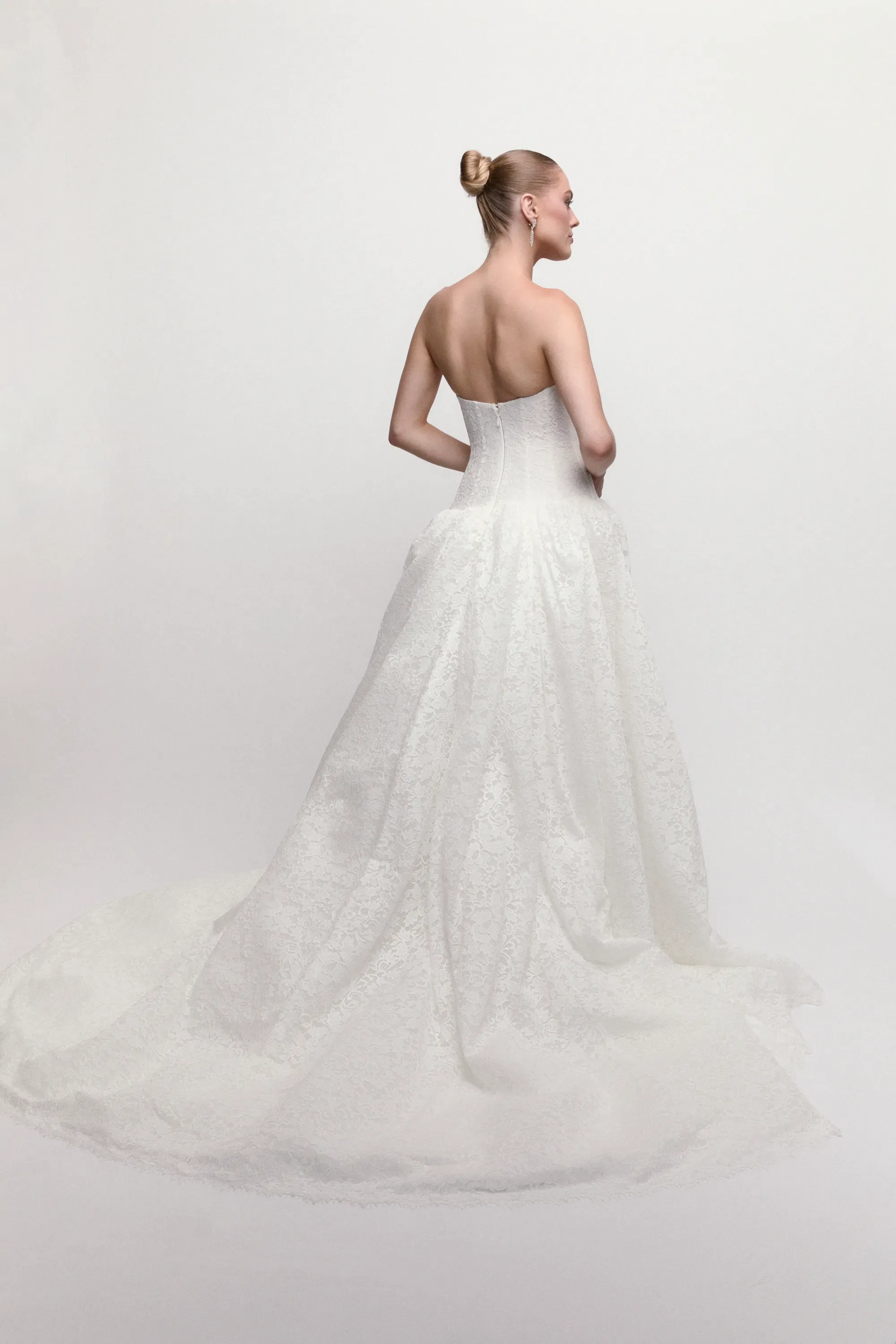 Fabric:Dotted Netting, Rococo Floral Lace, Soft netting, Stretch Poly Charmeuse, Tulle
